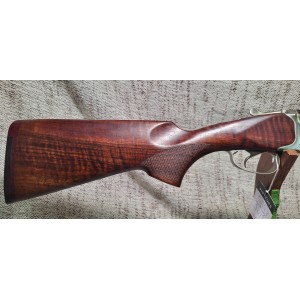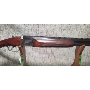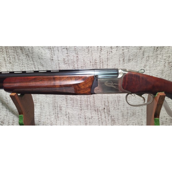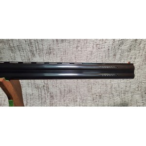 Fusil de sport calibre 12 magnum doté d'une bascule acier, canon 76 cm, guidon fibre optique, chokes interchangeables, crosse en noyer avec busc réglable et devant sport quadrillés, mono détente sélective dorée, éjecteur, talon amortisseur caoutchouc, éprouvé billes acier et bande ventilé sport de 10 mm.
