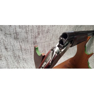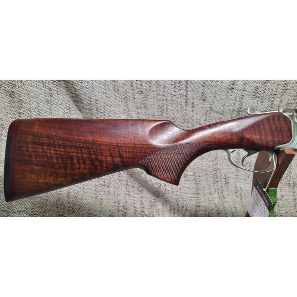 Express juxtaposé avec crosse 1/2 pistolet et devant beau bois grade en noyer quadrillage Ecossais, hausse rétractable et guidon fibre optique, système extracteur, double détente et système de sécurité niveau clé.